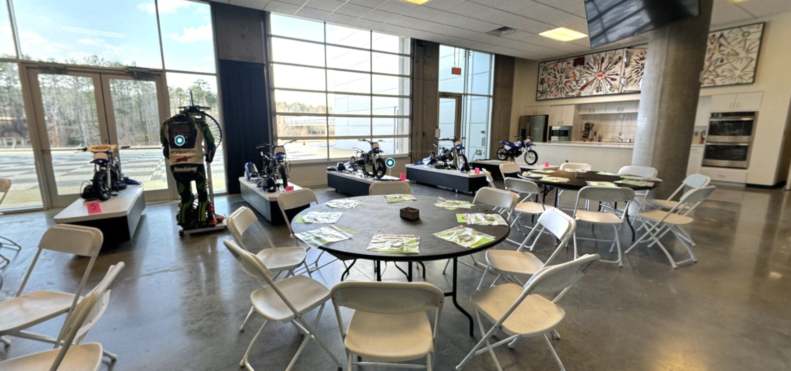 The T9 Classroom is located on the Conservation Level of the museum and has a view of Turn 9 of the Barber Road Course, the Pedestrian Bridge, and the Waterfall Feature. The classroom can comfortably hold 56 students with rounds of 8. This space is used for all hands-on activities as well as provides seating for lunch.